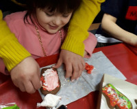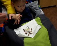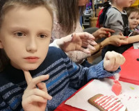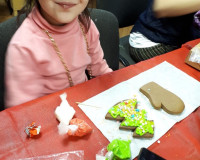 Сегодня у нас прошёл потрясающий предновогодний мастер-класс по пряникам. Детки рисовали на пряниках в виде ёлочки, варежки и снежинки. Это было очень здорово и весело. Дети были в восторге.